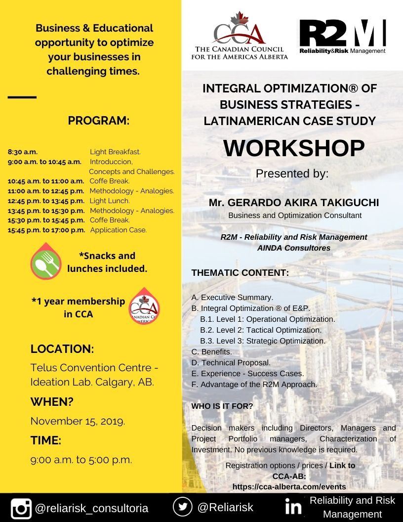The Canadian Council for the Americas Alberta, with the collaboration of R2M Reliability and Risk Management, invites you to register to attend the workshop